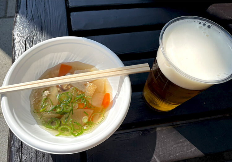 まずは小腹満たし。沢山ある出店の中から徳島県祖谷地方の郷土料理である「そば米雑炊」を選びました。